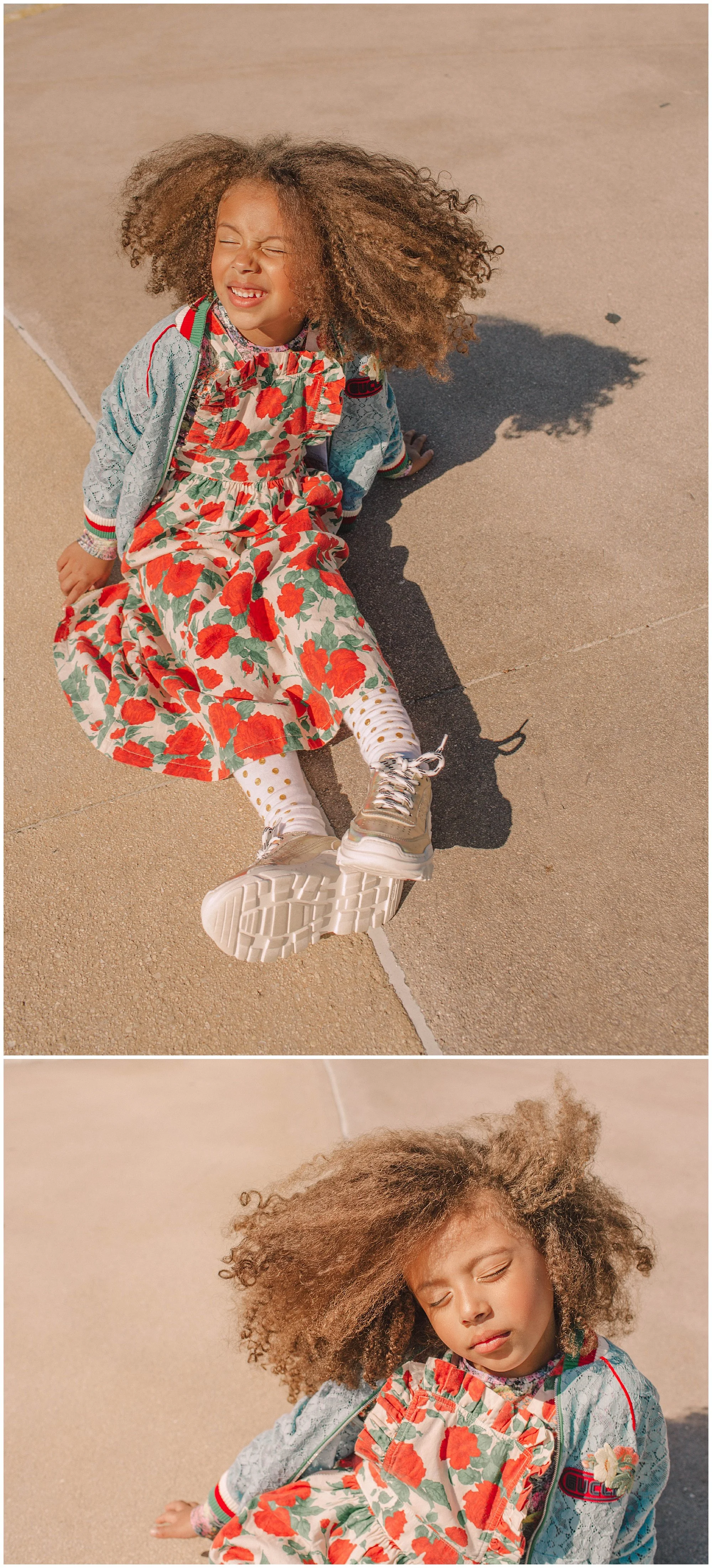 Creative Direction and Styling: Leslie SchorArt Direction and Photography: Brooke LogueModel: @lillyscurls from @sproutkidsagencyWearing: Nelly Stella, Molo, Ladida Kids, JRP socks, Gucci Kids